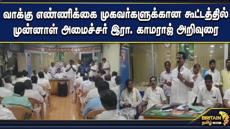 வாக்கு எண்ணிக்கை முகவர்களுக்கான கூட்டத்தில் முன்னாள் அமைச்சர் இரா. காமராஜ் அறிவுரை