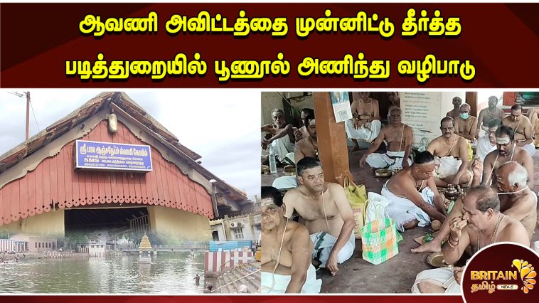 ஆவணி அவிட்டத்தை முன்னிட்டு தீர்த்த படித்துறையில் பூணூல் அணிந்து வழிபாடு