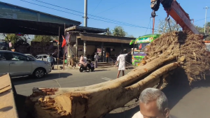 முன்னதாக அந்த மரத்தை கிரேனின் உதவியுடன் மரத்தின் வேர்களின் மையப் பகுதி சேதமடையாமல் பெரிய குழி தோண்டி கிரேனின் உதவியுடன் முழுவதும் எடுக்கப்பட்டது பின்னர்.