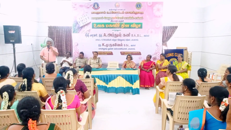 தஞ்சாவூர் மாவட்டம் பாபநாசத்தில் சர்வதேச மகளிர் தினத்தை முன்னிட்டு பாபநாசம் உட்கோட்ட காவல்துறை மற்றும் வேலு நாச்சியார் லயன்ஸ் சங்கம் இணைந்து நடத்தும் உலக மகளிர் தின விழா வேலு நாச்சியார் லயன் சங்க தலைவர் தில்லைநாயகி சம்பந்தம் தலைமையில் நடைபெற்றது.