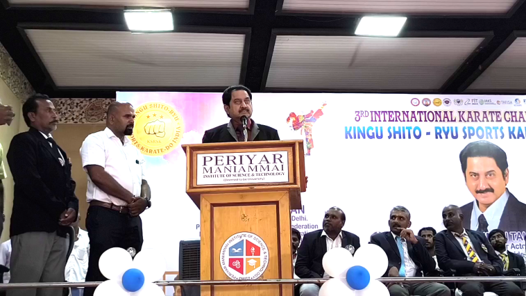 தஞ்சையை அடுத்துள்ள பெரியார் மணியம்மை கல்லூரியில் இன்று மாநில அளவிலான கராத்தே போட்டி நடைபெற்றது
