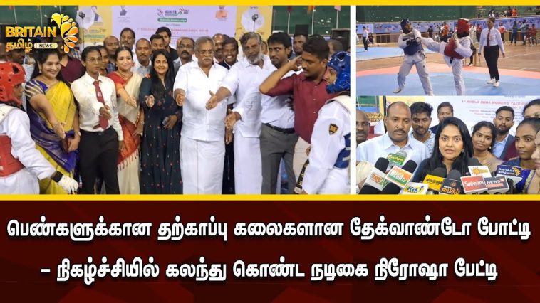 இதில் பெண்களுக்கான தூதர் நடிகை நிரோஷா சிறப்பு விருந்தினராக கலந்து கொண்டு தேக்வாண்டோ போட்டியை தொடங்கி வைத்தார்.