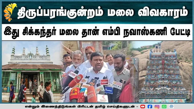 திருப்பரங்குன்றம் மலை மீது தர்கா உள்ளது அதனால் இந்த மலை சிக்கந்தர் மலை என்று தான் காலாகாலமாக அழைக்கப்படுகிறது. திருப்பரங்குன்றம் மலை விவகாரத்தில் ராமநாதபுரம் எம்பி நவாஸ்கணி பேட்டி