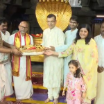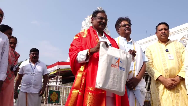 விஐபி பிரேக் தரிசனம் மூலம் அவர் ஏழுமலையான வழிபட்ட நிலையில் அவருக்கும் விஞ்ஞானிகள் குழுவினருக்கும் தேவஸ்தானம் சார்பில் தீர்த்த பிரசாதங்கள் வழங்கப்பட்ட நிலையில் வேதபண்டிதர்கள் வேத ஆசி வழங்கினர்.