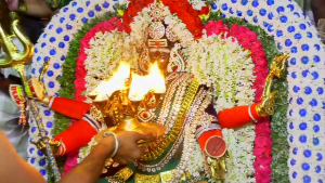 விழுப்புரம் மாவட்டம் திண்டிவனம் வட்டம் இரட்டணை ஸ்ரீ வென்னியம்மன் ஆலய செடல் பிரம்மோற்சவ விழாவை முன்னிட்டு வண்ண மலர்கள் கொண்ட அலங்கரிக்கப்பட்ட ஸ்ரீ மகேஸ்வரி அம்மனுக்கு கற்பூர ஆர்த்தி காண்பிக்கப்பட்டது.