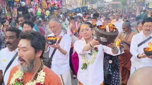 பழனி மாரியம்மன் கோவில் மாசி திருவிழாவை முன்னிட்டு ஜப்பான் நாட்டைச் சேர்ந்த பக்தர்கள் தீச்சட்டி எடுத்து ஓம் சக்தி, பராசக்தி என கோசமிட்டு வழிபாடு செய்தனர்.