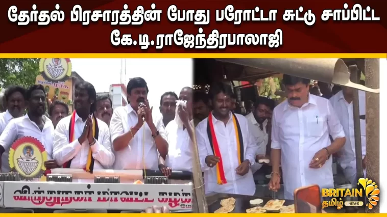 தேர்தல் பிரசாரத்தின் போது பரோட்டா சுட்டு சாப்பிட்ட கே.டி.ராஜேந்திர பாலாஜி