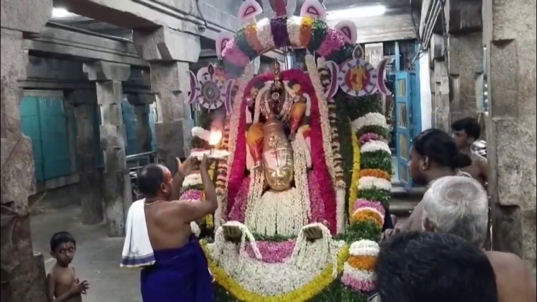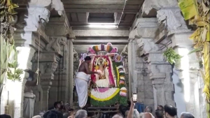 அதனை தொடா்நது ஏழுந்தருளிய சுவாமிக்கு குடைவரை வாயில் தீபாராதனை நடைபெற்றது. அதனை தொடா்ந்து ஊா் மக்கள் சாா்பில் புது வஸ்திரம் சுவாமிக்கு சமா்பிக்கப்பட்டது.