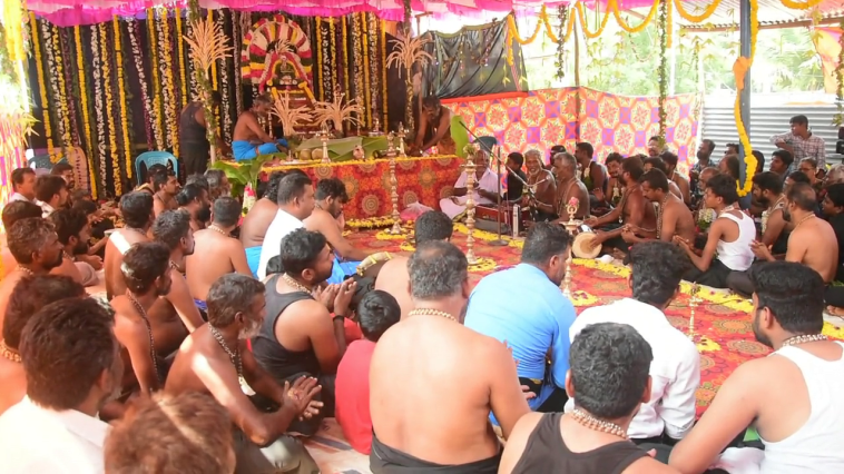 மதுரை விக்கிரமங்கலத்தில் உள்ள தத்துவமஸி ஐயப்பன் கோவிலில் கன்னி பூஜை கூட்டு பிரார்த்தனை