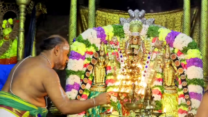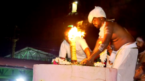 மூலவரிடம் பூஜை செய்யப்பட்ட கொப்பரை தலையில் சுமந்தபடி கோவில் உட்பிரகாரம் எடுத்து வரப்பட்டு உற்சவமூர்த்தியிடம் பூஜிக்கப்பட்ட பின் பரணி தீபமானது, மகா தீபத்துடன் சேர்க்கப்பட்டு சங்குகன்னர் மண்டபத்தின் மேல் கார்த்திகை மகா தீபம் ஏற்றப்பட்டது.