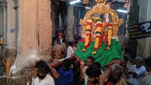 முன்னதாக உற்சவர் சன்னதியில் சுப்பிரமணிய சுவாமி தெய்வானை அம்மனுக்கு பால், பன்னீர், இளநீர் உள்ளிட்ட 16 வகை அபிஷேகங்கள் நடைபெற்று சிறப்பு ஆதாரதனைகள் நடைபெற்றது. இதையடுத்து சுவாமி தெய்வானையுடன் சர்வ அலங்காரத்தில் கம்பத்தடி மண்டபத்தில் எழுந்தருளினார்.