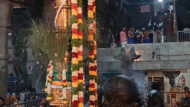 அங்கு தங்கமுலாம் பூசப்பட்ட கொடிமரத்தில் புனிநீர் கொண்டு அபிஷேகம் செய்த அருகம்புல் மா இலை, சந்தனம் குங்குமம், பூமாலைகள் கொண்டு அலங்காரம் செய்யப்பட்டு சிறப்பு தீபாராதனைகள் நடைபெற்றது.