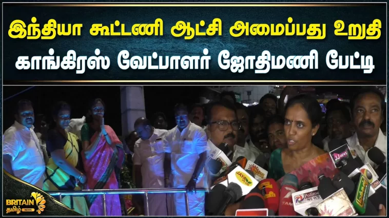 இந்தியா கூட்டணி ஆட்சி அமைப்பது உறுதி – பொய் பிரச்சாரங்களை மீறி கரூர் தொகுதி மக்கள் எனக்கு மகத்தான வெற்றியை கொடுத்துள்ளார்கள் என ஜோதிமணி பேட்டி.