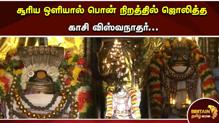 சூரிய ஒளியால் பொன் நிறத்தில் ஜொலித்த காசி விஸ்வநாதர்…