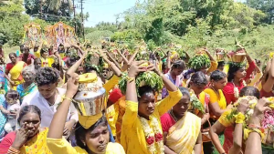இத் திருவிழாவை முன்னிட்டு, மன்னம் பந்தல் காவிரி ஆற்றங்கரையிலிருந்து, கடந்த ஒரு வார காலமாக காப்பு கட்டி விரதமிருந்த பக்தர்கள் பால்குடம் எடுத்தும் அலகு காவடி எடுத்தும் வீதியுலா வரும் போது. அனைத்து வீடுகளிலும் மா விளக்கு, தீப ஆராதனை எடுத்து அம்மனை வழிப்பட்டனர்.