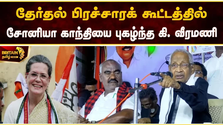 சோனியா காந்தியை தேர்தல் பிரச்சாரக் கூட்டத்தில் புகழ்ந்த கி வீரமணி