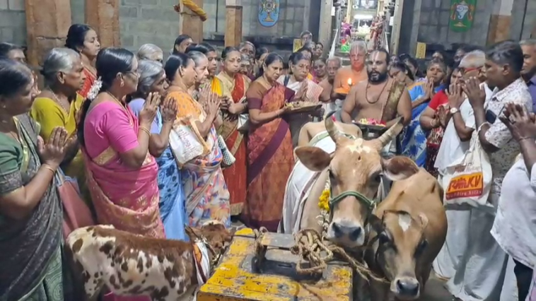 இதனை ஒட்டி அதிகாலை கோவில் நடை திறக்கப்பட்டு விஸ்வரூப தரிசனம் நடைபெற்றது பின்னர் கோவில் பெரிய திருவடி சன்னதி முன்பு கன்றுடன் கூடிய பசு அழைத்துவரப்பட்டு கோ பூஜை நடைபெற்றது தொடர்ந்து பசுவிற்கு புத்தாடை அணிவிக்கப்பட்டு உலக நன்மை வேண்டி சிறப்பு அர்ச்சனை செய்யப்பட்டு அரிசி வெல்லம் உள்ளிட்ட பிரசாதங்கள் கொடுக்கப்பட்டது தொடர்ந்து மகா தீபாராதனை நடைபெற்றது இதில் திரளான பக்தர்கள் கலந்து கொண்டு பசுவிற்கு அரிசி உள்ளிட்ட பொருட்களை வழங்கி வழிபாடு நடத்தினர்