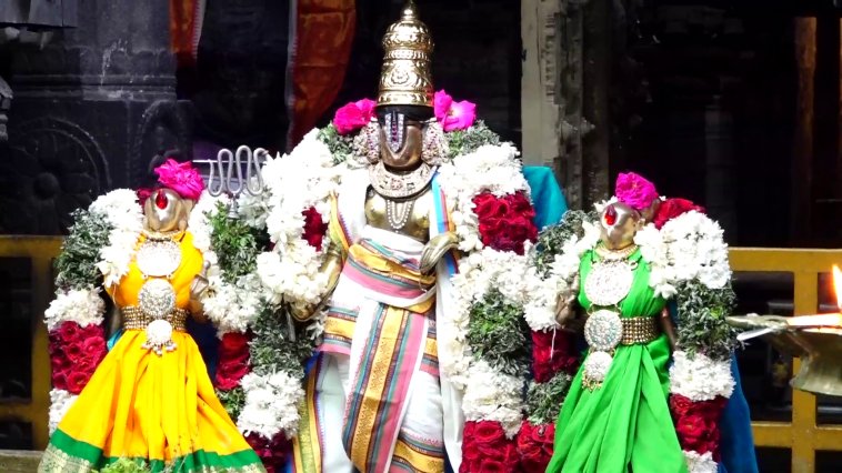 தொடா்ந்து மூலஸ்தானத்தின் முன் அமைந்துள்ள கருடன் சன்னதி முன்பு கோபூஜை நடைபெற்றது. பசுவுக்கும் கன்றுக்கும் புது வஸ்திரம் அணிவித்து ஸ்ரீசுக்தம் சொல்லி பூக்கள் மற்றும் குங்குமத்தால் அா்ச்சனை செய்யப்பட்டது.