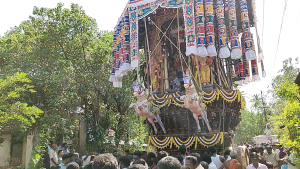 தேரோட்டத்தில் ஏராளமான பக்தர்கள் கலந்துகொண்டு தேரை வடம் பிடித்து இழந்து வந்தனர்.