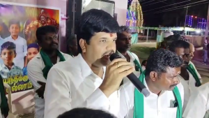 முன்னதாக அவருக்கு பொன்னாடை போற்றி சந்தன மாலை அணிவித்து மேள தாளங்கள் முழங்க ஆட்டம் பாட்டத்துடன் வெடி வெடித்து ஆரத்தி எடுத்து உற்சாகமாக வரவேற்பு அளிக்கப்பட்டது.