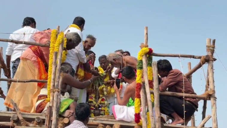 புனித நீர் ஊற்றிய போது வட்டமிட்ட இரண்டு கருட பகவான்கள் கரகோஷம் எழுப்பி வணங்கிய பக்தர்கள்