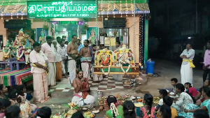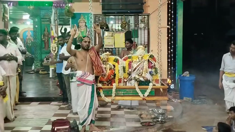 ஐந்தாம் நாள் நிகழ்ச்சியான திருக்கல்யாண உற்சவம் நேற்று ஆலயத்தில் நடைபெற்றது, இதனை முன்னிட்டு பக்தர்கள் சீர்வரிசை எடுத்து வர,வேதியர்கள் மந்திரம் ஓதி யாகம் வளர்த்தனர் தொடர்ந்து திருக்கல்யாணம் தொடர்பான சடங்குகள் நடைபெற்றன.