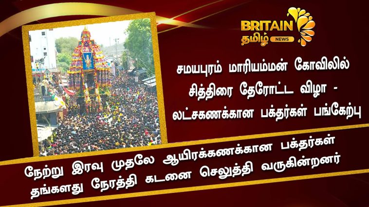 திருச்சி சமயபுரம் மாரியம்மன் கோவிலில் சித்திரை தேரோட்ட விழா – லட்சகணக்கான பக்தர்கள் பங்கேற்பு திருச்சி சமயபுரம் அருள்மிகு மாரியம்மன் திருக்கோவிலில் சித்திரை தேரோட்ட திருவிழா வெகு விமர்சையாக தற்போது துவங்கி நடைபெற்று வருகிறது …