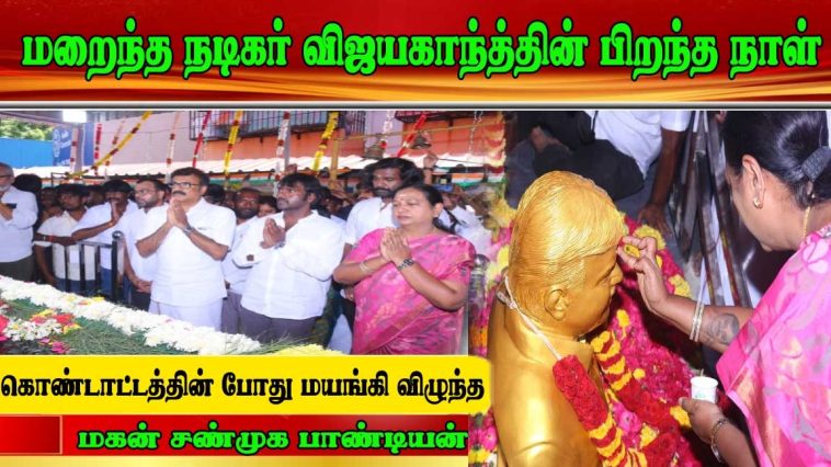 மறைந்த நடிகர் விஜயகாந்த் அவர்களின் பிறந்த நாள் கொண்டாட்டத்தின் போது மயங்கி விழுந்த மகன் சண்முக பாண்டியன்