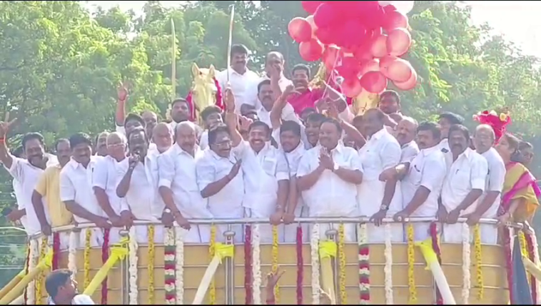 எடப்பாடி உடன் முன்னாள் அமைச்சர்கள் செல்லூர் ராஜு, ஆர்பி உதயகுமார், திண்டுக்கல் சீனிவாசன், நத்தம் விஸ்வநாதன் , கடம்பூர்ராஜூ