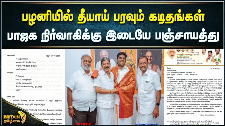 பழனியில் தீயாய் பரவும் கடிதங்கள் பாஜக நிர்வாகிக்கு இடையே பஞ்சாயத்து