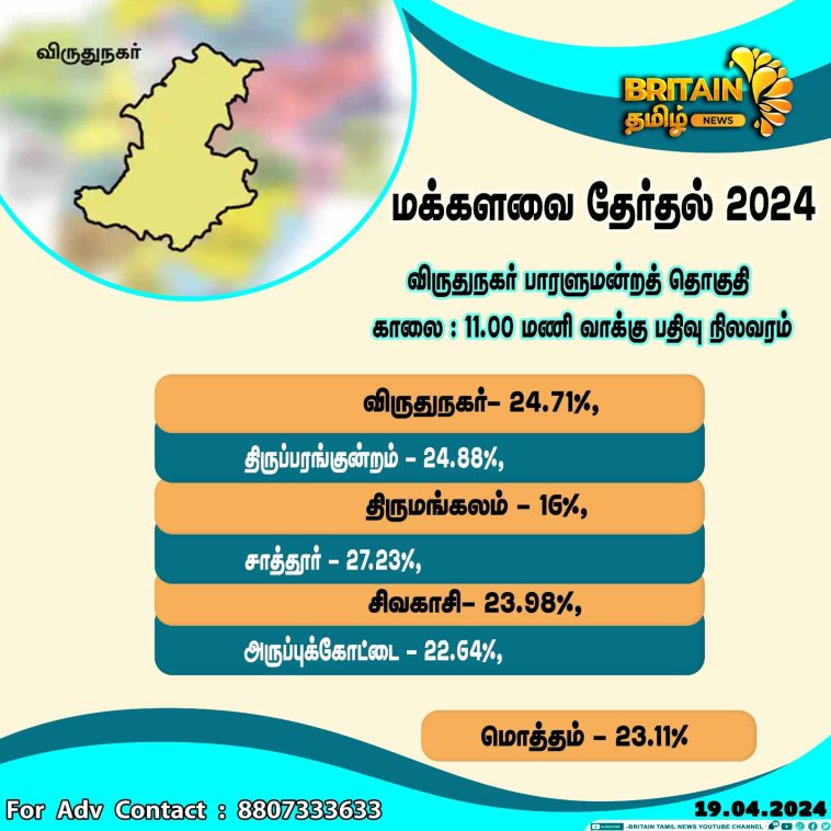 விருதுநகர் மாவட்ட பாரளுமன்றத் தொகுதி – வாக்கு பதிவு நிலவரம்