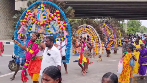 பாபநாசம் அருகே மதகரம் புதுத்தெரு கிராமத்தில் எழுந்தருளியிருக்கும் ஸ்ரீ மஹா காமாட்சியம்மன் கோவில் பால்குட திருவிழா வெகு விமர்சையாக நடைபெற்றது. முன்னதாக பொய்கை ஆற்றங்கரையிலிருந்து திரளான பக்தர்கள் பால்குடம் காவடி அலகு காவடி கத்தி காவடி எடுத்து முக்கிய வீதிகள் வழியாக மேளதாளத்துடன் வீதியுலா வந்து மதகரம் புதுத்தெரு கிராமத்தில் அமைந்திருக்கும் ஸ்ரீ மஹா காமாட்சி அம்மன் கோவிலை வந்தடைந்தனர்.