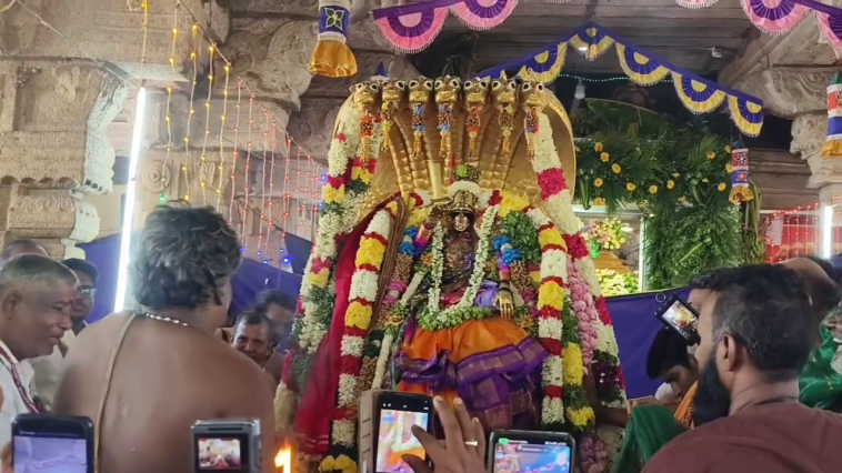 மதுரை கள்ளழகர் சித்திரை திருவிழாவின் சிகர நிகழ்வான மண்டூக முனிவருக்கு சாப விமோசனம் அளிக்கும் நிகழ்விற்காக சேஷ வாகனத்தில் எழுந்தருளி தேனூர் மண்டபம் நோக்கி புறப்பட்டார் கள்ளழகர்.