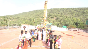 இதனை தொடர்ந்து தங்கக் கொடிமரத்தில் மங்கள வாத்தியங்கள், வேத மந்திரங்கள் முழங்கிட கருடாழ்வார் உருவம் பொறித்த கொடி கொடிமரத்தில் ஏற்றப்பட்டு சிறப்பு பூஜைகள் மற்றும் தீபாரதனை நடைபெற்றது.