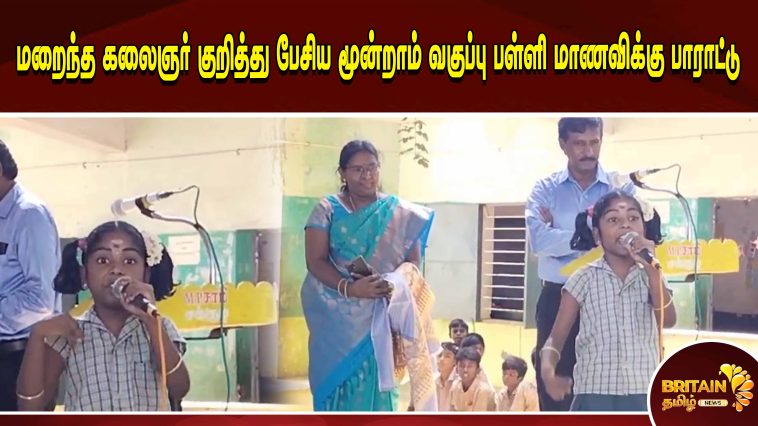 மறைந்த கலைஞர் குறித்து பேசிய மூன்றாம் வகுப்பு பள்ளி மாணவிக்கு பாராட்டு