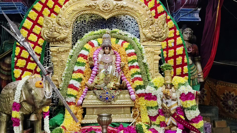 அதன்படி விழாவின் 7 ஆம் நாளான இன்று கோவில் வளாகத்தில் உள்ள சுவாமி சன்னதியின் 2ஆம் பிரகாரத்தில் உள்ள கொலு மண்டபத்தில் மீனாட்சியம்மன் சித்தர் கோல அவதாரத்தில் எழுந்தருளி பக்தர்களுக்கு அருள்பாலித்தார்.