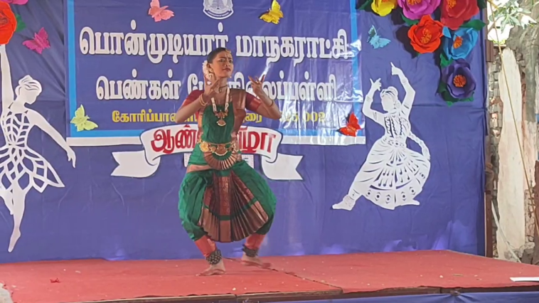 மதுரை கோரிப்பாளையம் பகுதியில் பொன்முடியார் மாநகராட்சி பெண்கள் மேல்நிலைப்பள்ளி செயல்பட்டு வருகிறது. இங்கு 500க்கு மேற்பட்ட மாணவியர்கள் பயின்று வருகின்றனர். இந்த நிலையில் இந்த ஆண்டிற்கான பள்ளி ஆண்டு விழா நடைபெற்றது தலைமையாசிரியை தலைமையில் நடைபெற்ற இந்த ஆண்டு விழாவில் ஏராளமான பள்ளி மாணவிகள் பரதநாட்டியம், ஆடல் பாடல் என தங்களது திறமைகளை வெளிப்படுத்தினர்.
