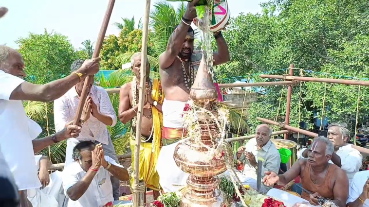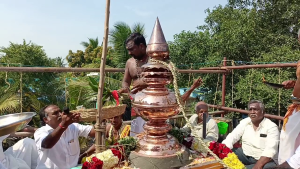 முன்னதாக மகா கும்பாபிஷேக விழாவினை முன்னிட்டு கடந்த 4- ஆம் தேதி மங்கள இசையுடன் விக்னேஷ்வர பூசை, மகா கணபதி கோமம், நவக்கிரக கோமம், கோ பூசை உள்ளிட்ட மகா பூர்ணாகதி நடைபெற்று மகா தீபாராதனை காட்டபட்டது.