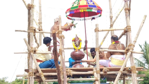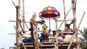 அதனை தொடர்ந்து இன்று 4 ஆம் கால யாகசாலை பூஜை நிறைவுற்று பூரணாஹூதி செய்விக்கபட்டு மஹா தீபாராதனை காட்டப்பட்டது.