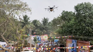 ட்ரோன் மூலம் பொதுமக்கள் மீது புனித நீர் தெளிப்பு