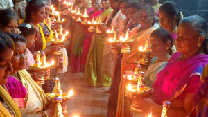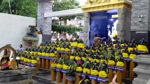 இந்த பூஜைக்கு பின் 7.00 மணியளவில், 108 பெண்கள் மண்ணால் செய்யப்பட்ட விநாயகர் சிலை கொண்டு 1 அடி விளக்கினை ஏற்றி தங்க தேருடன் கோபால சமுத்திர குளத்தை சுற்றி வந்தனர்.