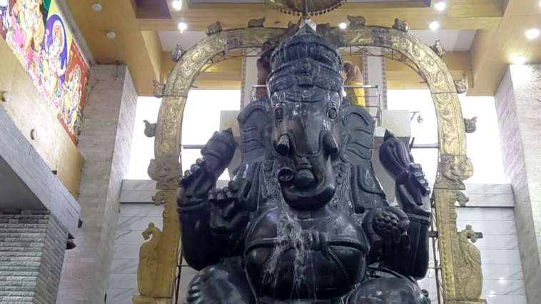 ஆசியாவிலேயே ஒரே கல்லிலான 32 அடி உயரமான விநாயகருக்கு மகா சங்கடஹர சதுர்த்தி நாளான இன்று 16 வகை அபிஷேகங்கள் நடைபெற்றது