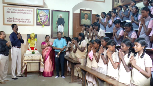 தொடர்ந்து மாணவிகள் பாரதியின் பாடல் பாடி கவிய அஞ்சலி செலுத்தியதுடன் தேசிய ஒருமைப்பாட்டு உறுதி மொழியையும் எடுத்துக்கொண்டனர்.