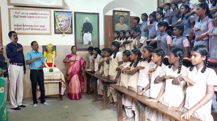 இந்த நிலையில் மகாகவி பாரதியாரின் 142 ஆவது பிறந்த நாளை ஒட்டி பாரதி படித்த வகுப்பறையில் அமைந்திருக்கும் மார்பளவு சிலைக்கு பள்ளி ஆசிரியர்கள் மாணவ மாணவிகள் மலர் தூவி மரியாதை செய்தனர்.