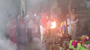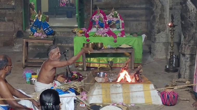 இந்த ஹோமத்தை கோயில் செயல் அலுவலர் ஆர். விக்னேஷ் தலைமை வகித்து தொடக்கி வைத்தார். ஹோமத்தில் பட்டாச்சாரியர்கள் மங்கல பொருள்களால் சிறப்பு ஹோமம் நடத்தி மகா பூர்ணாஹூதி செய்தனர். தொடர்ந்து சுவாமி, அம்மனுக்கு சிறப்பு ஆராதனைகள் செய்து மகா தீபாராதனை நடைபெற்றது.