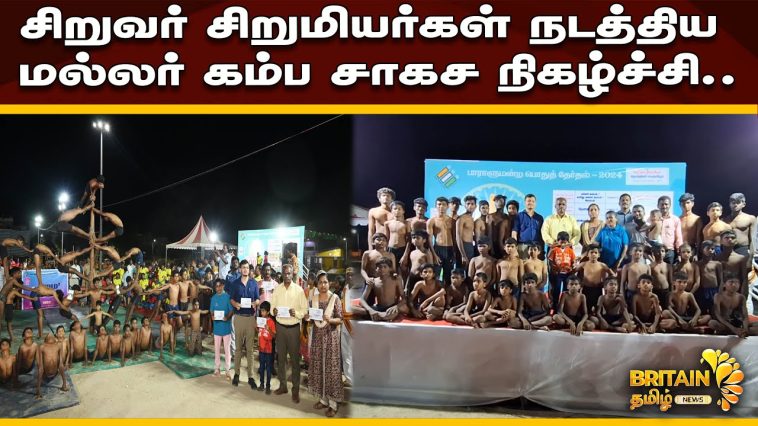 100% வாக்களிக்க வேண்டும் என்பதை வலியுறுத்தும் வகையில் சிறுவர் சிறுமியர்கள் நடத்திய மல்லர் கம்ப சாகச நிகழ்ச்சி…