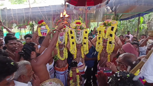 தொடர்ந்து நான்கு கால யாக பூஜைகளுடன் மகா பூர்ணாஹூதியுடன் பூஜிக்கப்பட்ட புனித நீர் கொண்ட கலசங்கள் மங்கள வாத்தியங்கள் முழங்க சிவாச்சாரியார்களின் வேத மந்திரங்களுடன் விண்ணத்திரும் வான வேடிக்கைகளுடன் புறப்பட்டு தொடர்ந்து திருப்பனந்தாள் காசி திருமடம் இளவரசு சுவாமிகள், சிவராமபுரம் வாயு சித்த ராமானுஜ ஜீயர் சுவாமிகள், மற்றும் ஆதீனங்கள் துறவியர்கள் திருமண கோயிலின் விமானத்திற்கு புனித நீர் ஊற்றப்பட்டு பக்தர்களின் சரண கோஷத்துடன் மகா கும்பாபிஷேக பெருவிழா வெகு விமரிசையாக நடந்தது.