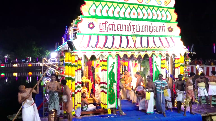 தெப்பம் 5 சுற்றுகள் வலம் வந்தது. ஆழ்வாா் ஆச்சாா்யா்கள் தெப்பத்திருவிழாவில் ஆழ்வாா்திருநகாி எம்பெருமானாா் ஜீயர் சுவாமிகள் அரையா் ஆச்சாாிய புருஷா்கள், பக்தா்கள் தெப்பத்திருவிழாவினை கண்டு வணங்கினா்.