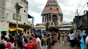 தொடர்ந்து, ராஜகோபாலசுவாமி மற்றும் ஆதிவராகப்பெருமாள் திருக்கோவில் கட்டு தேரோட்டம் நடைபெற்றது. கொட்டும் மழையிலும் பக்தர்கள் நிறைந்தபடி தேரை வடம் பிடித்து இழத்து வருகின்றனர்.