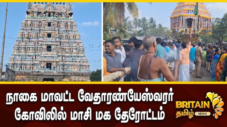 வேதாரண்யேஸ்வரர் கோவிலில் மாசி மக தேரோட்டம் -பல்லாயிரக்கணக்கான பக்தர்கள் தேரை வடம் பிடித்து இழுத்தனர்.